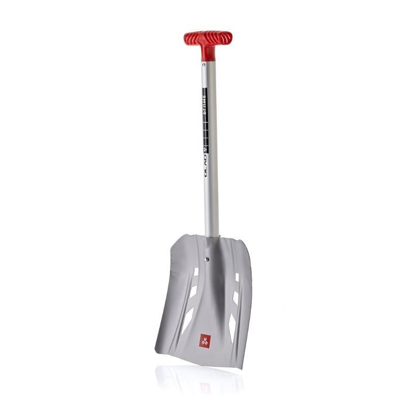 Lightweight and compact snow showel consists of a removable carbon fiber shaft and an aluminum scoop. The Plume showel is designed for users looking to save weight.